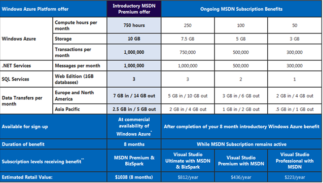 Windows Azure MSDN Benefits
