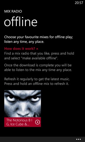 These can then be downloaded (up to a maximum of 4) so you can listen to them offline. This is a great and very handy feature, especially if your local music collection is limited and/or played out!