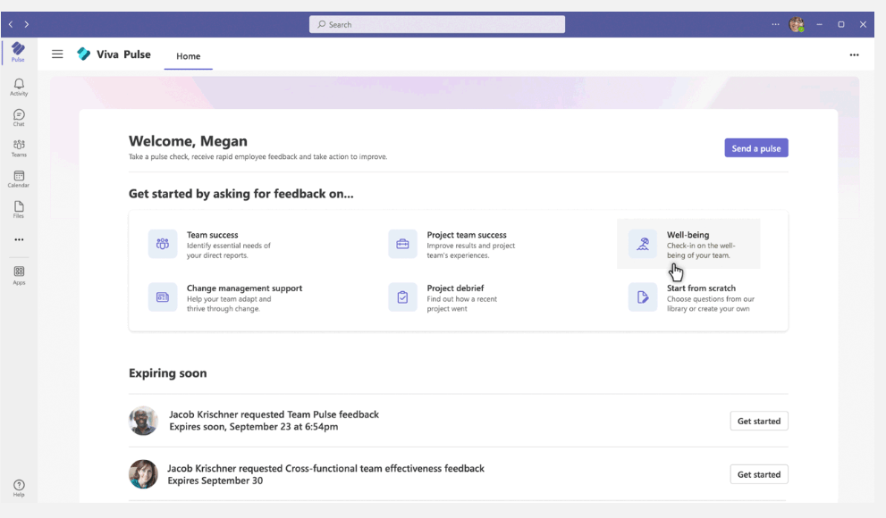 This allows managers to gather feedback from their team members, in a regular and confidential manner via Teams. It comes with templates and suggested questions which help ensure the right questions are being asked in the best way – something which can be difficult for a manager to get right on their own.
