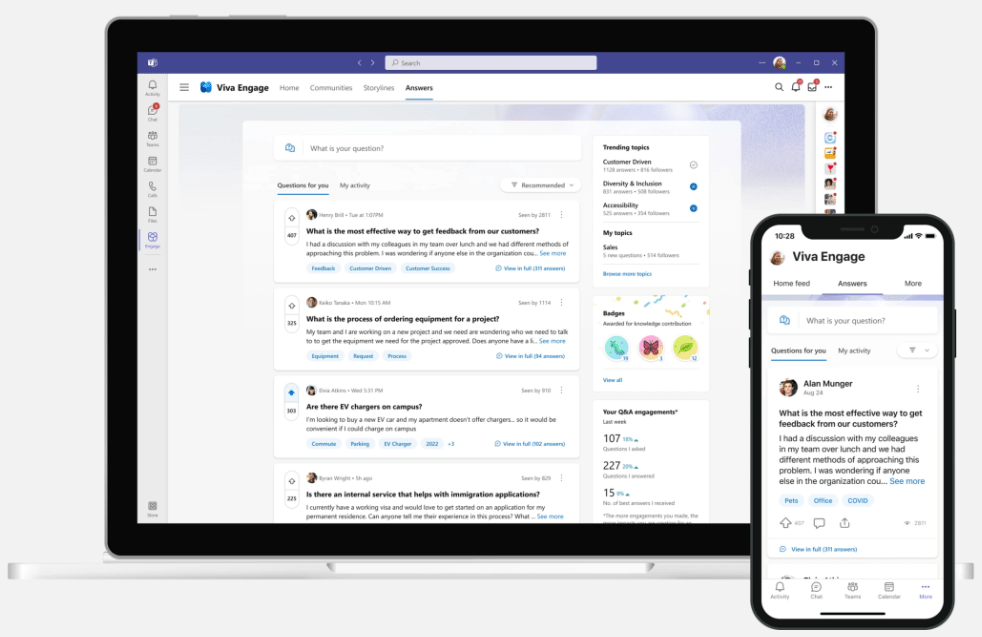 This will be available within the Viva Engage app, to users licensed for Viva Suite, and will work with Viva Topics and Viva Engage. It uses AI to match user questions to existing answers and highlights relevant topics and experts. It also uses gamification to to encourage people to add content to the knowledge base.