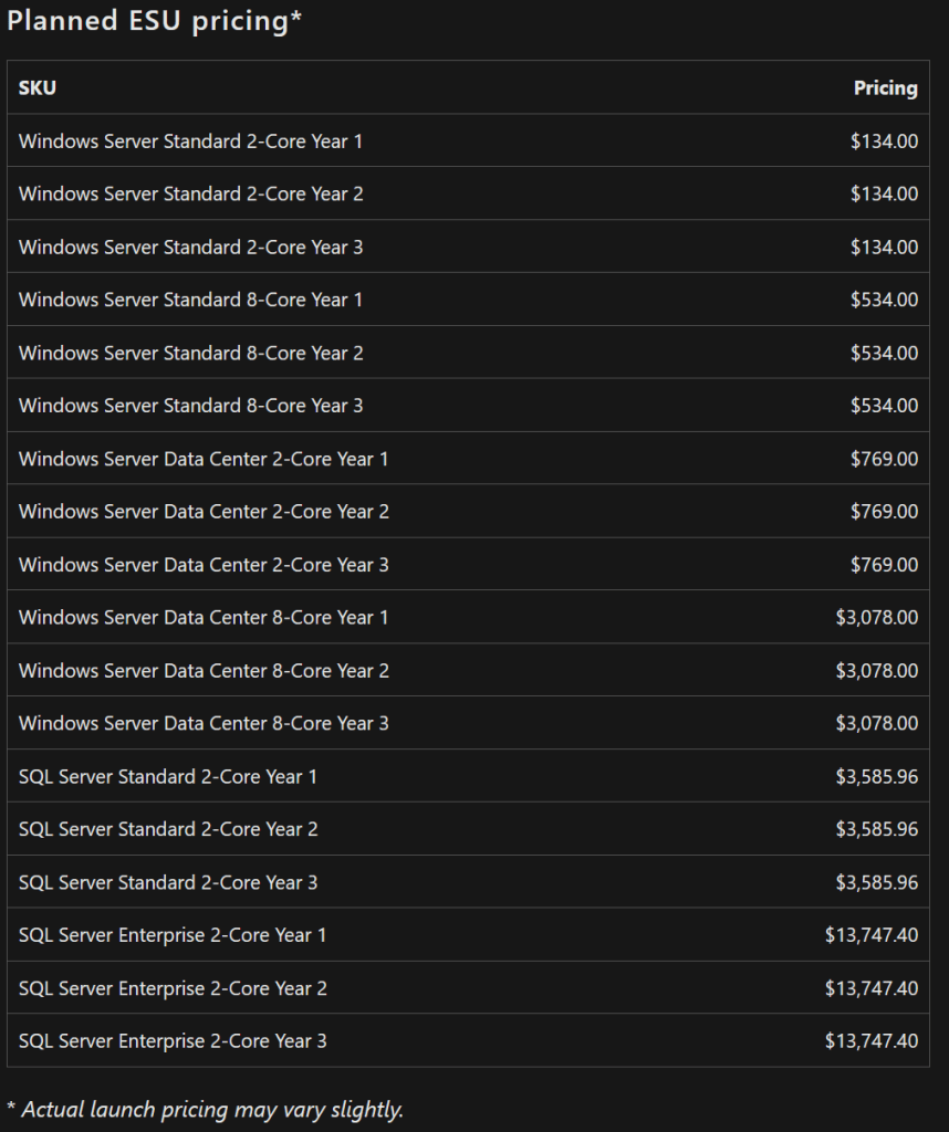 “CSP partners will be able to offer ESUs for end of support versions of Windows Server and SQL Server.