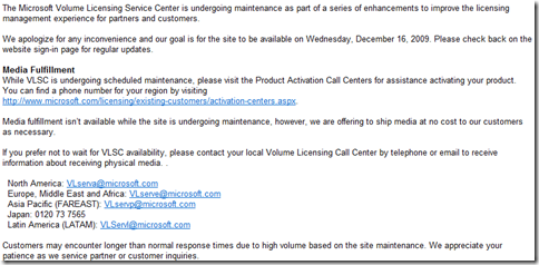 Microsoft Volume Licensing Service Centre (VLSC) December 2009