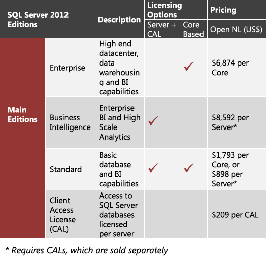 • All existing SQL Enterprise Editions licensed via Server + CAL with SA (Software Assurance) can be upgraded to SQL 2012 and the SA can be maintained to provide access to future updates.