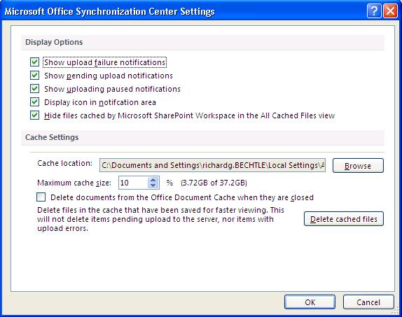 Office 2010 Sync Center Settings