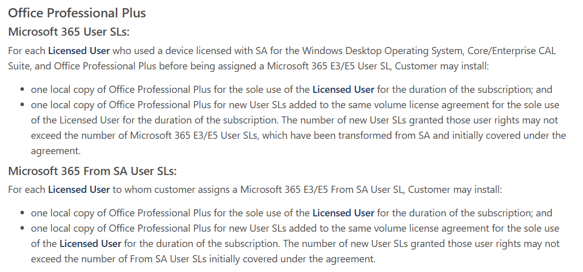 and has now been assigned a Microsoft 365 E3/E5 User SL can install a local copy of Office Professional Plus for the duration of the USL subscription.