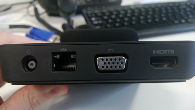 I used the VGA port to connect the device to my monitor and use it as a second screen, which worked very well. Also, the snap feature is then available.
