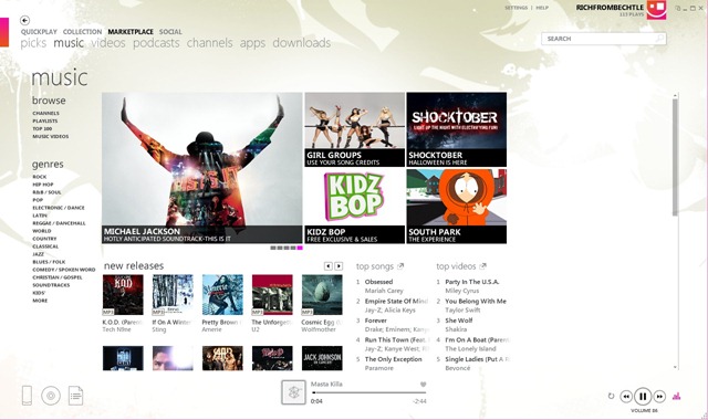 Rather than them being separate section as in WMP, you can see Artists, Albums and individual songs all at once. This section has got a very current, web 2.0 app style feel and I’m a big fan.